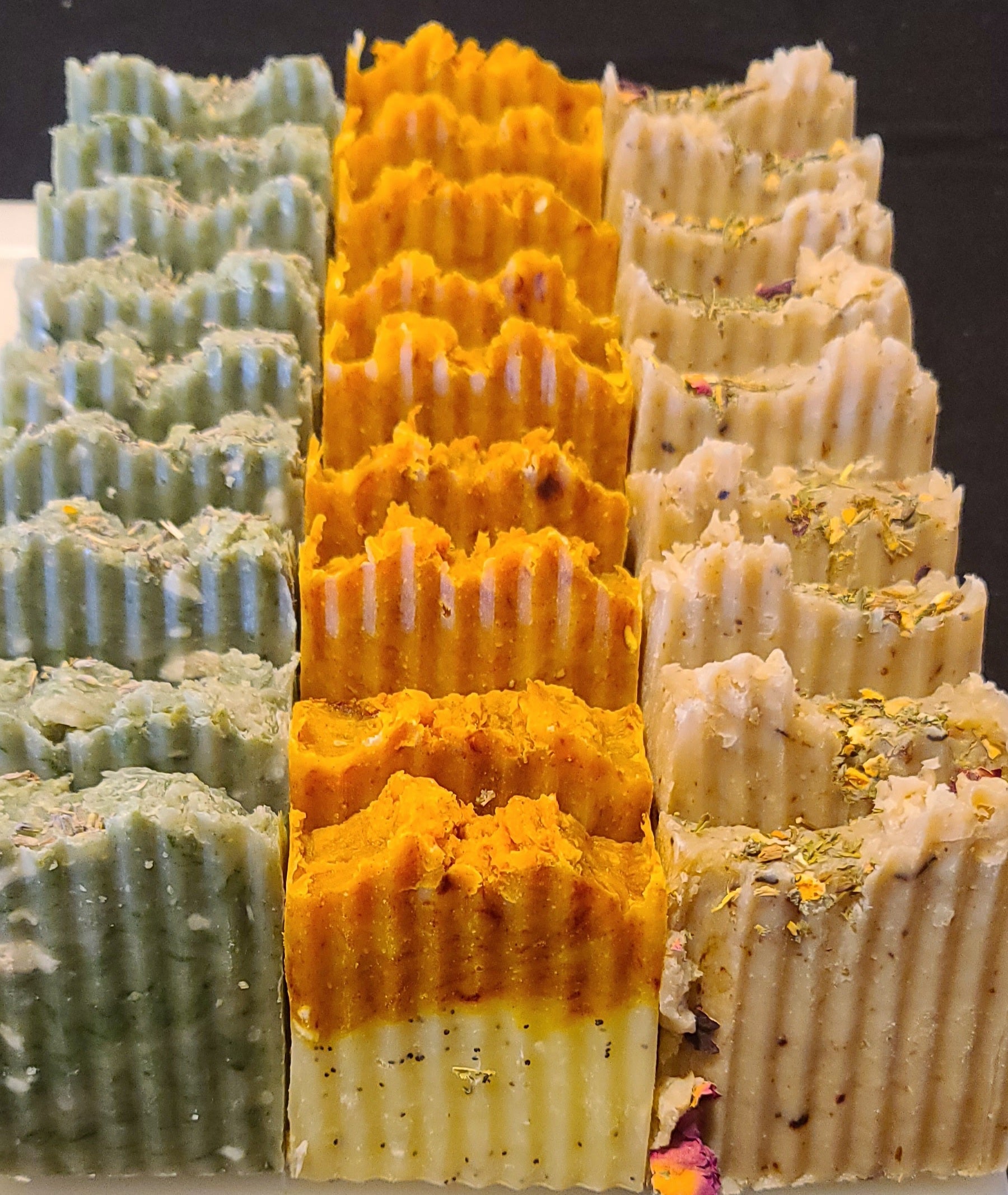 An Aromatic blend of Citrus and Coconut infused with the moisture enhancing touch of Shea Butter. Is the perfect bar for exfoliating with poppy seeds and skin perfecting with Turmeric Powder.